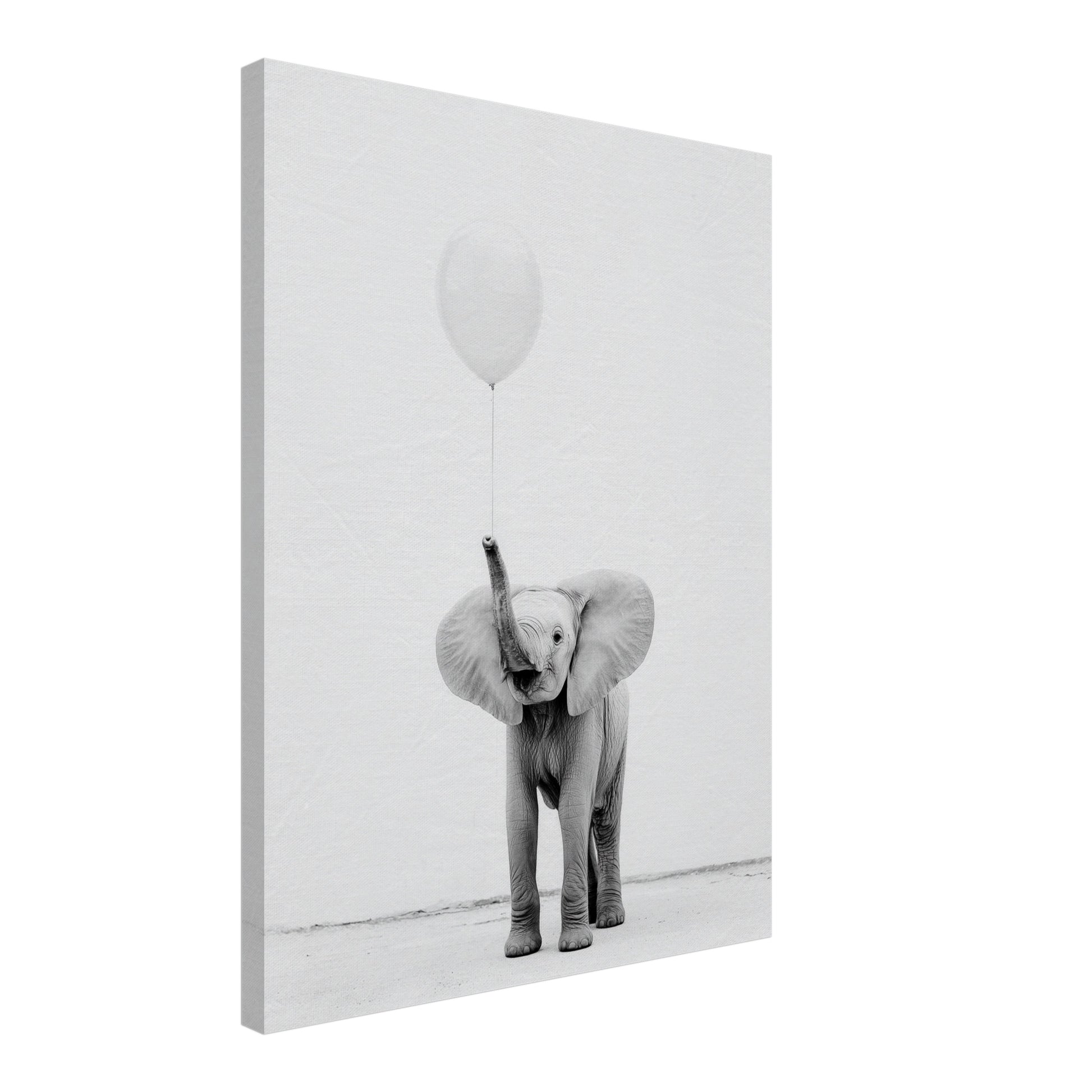 Im Elefant mit Ballon Leinwandbild entfaltet sich eine stille Bildwirkung, getragen von Reduktion und Struktur. Die Leinwand verstärkt die feinen Übergänge zwischen Hell und Dunkel und verleiht dem Motiv Tiefe. Der Elefant erscheint ruhig und gesammelt, der Ballon setzt einen leichten, fast schwebenden Akzent. Als Bestandteil hochwertiger Schwarz Weiß Leinwandbilder fügt sich das Bild besonders harmonisch ins Schlafzimmer oder Badezimmer ein. Die Komposition bleibt klar und ausgewogen und setzt ein leises Schwarz Weiß Bilder-Statement.