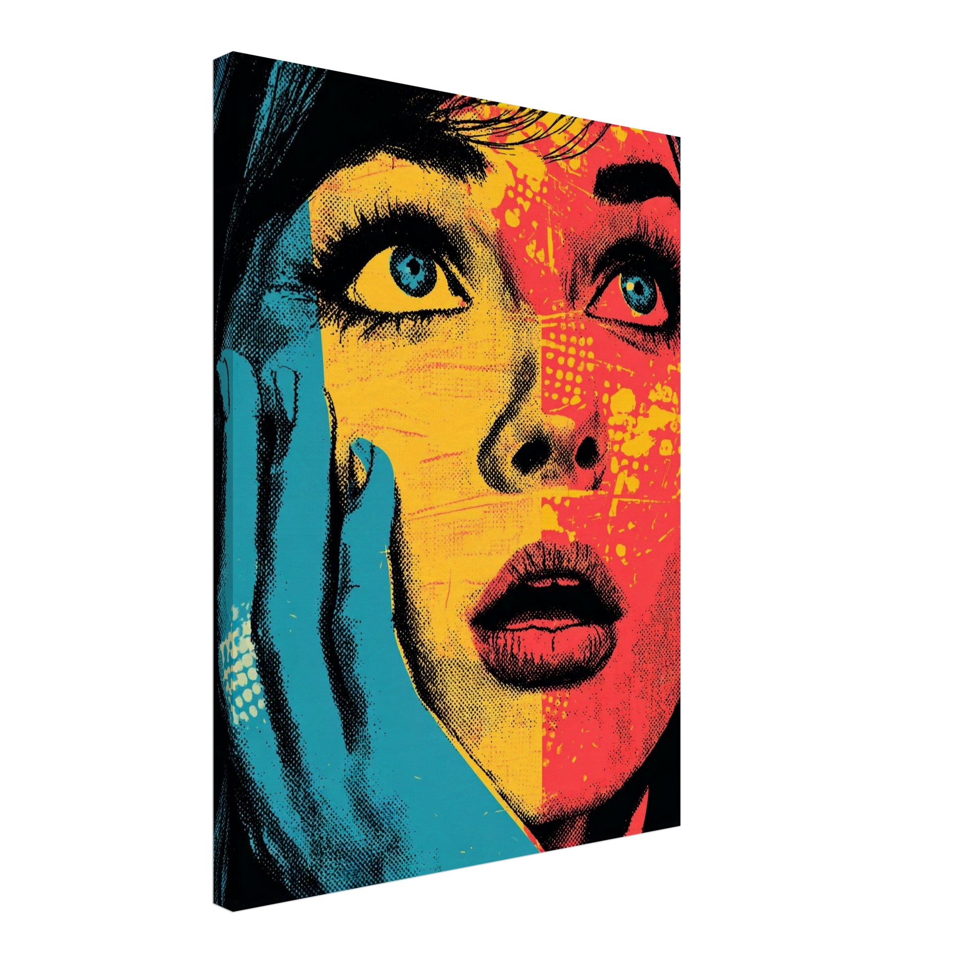 Pop Art in Bewegung – das Pop Art Leinwandbild „Frauengesicht in Blau Gelb“ vereint urbane Energie und künstlerische Präzision. Die kräftigen Flächen aus Blau, Gelb und Rot bilden ein vibrierendes Spannungsfeld, das das Pop Art Bild zum Leben erweckt. Durch die Textur der Leinwand entfalten die Farben eine neue Tiefe – ein echtes Erlebnis für Auge und Raum. Ideal für Wohnzimmer oder Flur, wo Pop Art Bilder Leinwand und Popart Kunstwerke zu modernen Statements werden. Ausdrucksstark, plakativ, zeitlos.