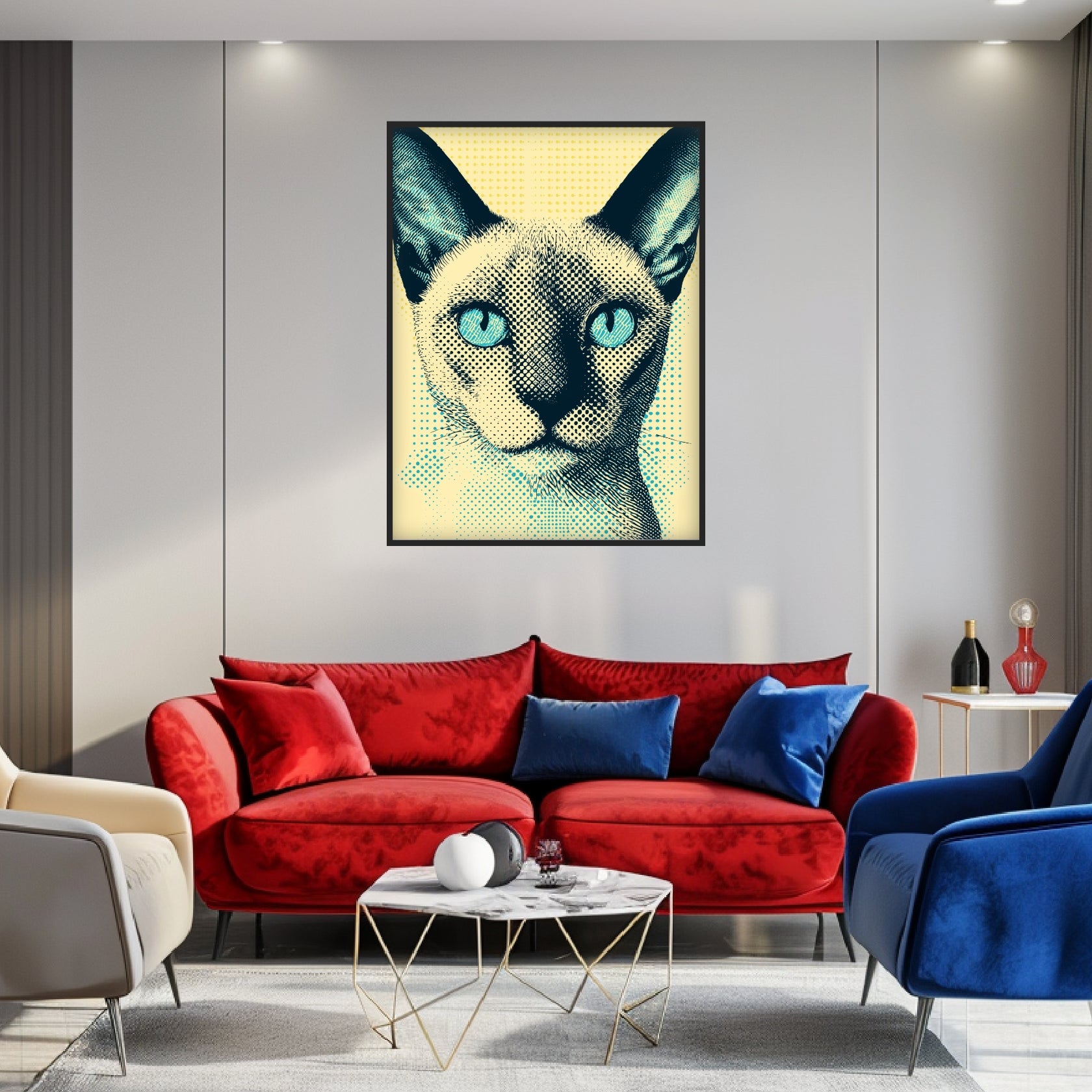 Fokussiert, ruhig und voller Ausdruck. Der direkte Blick der Katze dominiert das Motiv und zieht den Betrachter sofort in seinen Bann. Feine Punktstrukturen treffen auf starke Kontraste und erzeugen die typische Dynamik der Popular Art. Als Pop Art Poster entfaltet das Bild eine klare, grafische Wirkung. Die reduzierten Pop Art Motive erinnern an klassische Comic-Ästhetik und moderne Street-Art. Der prägnante Popart Stil macht dieses Poster ideal für Wohnzimmer oder Flur mit urbanem Anspruch.