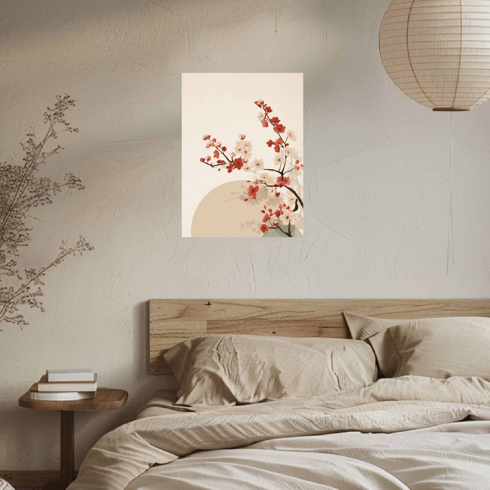 Das Kirschblütenzweig mit Sonne Leinwandbild ist ein Ausdruck von Balance und Licht. Zarte Kirschblüten entfalten sich in einem ruhigen Spiel aus Farbe und Form, umgeben von der warmen Präsenz einer sanften Sonne. Diese Komposition verkörpert den Japandi Stil in seiner klaren, achtsamen Schlichtheit und verbindet ihn mit der poetischen Sensibilität japanischer Ästhetik. Auf Leinwand entsteht eine sanfte Tiefe, die das Motiv lebendig wirken lässt. Im Flur oder Schlafzimmer verleiht dieses Japandi Wandbilder Werk dem Raum eine Atmosphäre von Frieden, Leichtigkeit und kontemplativer Schönheit.