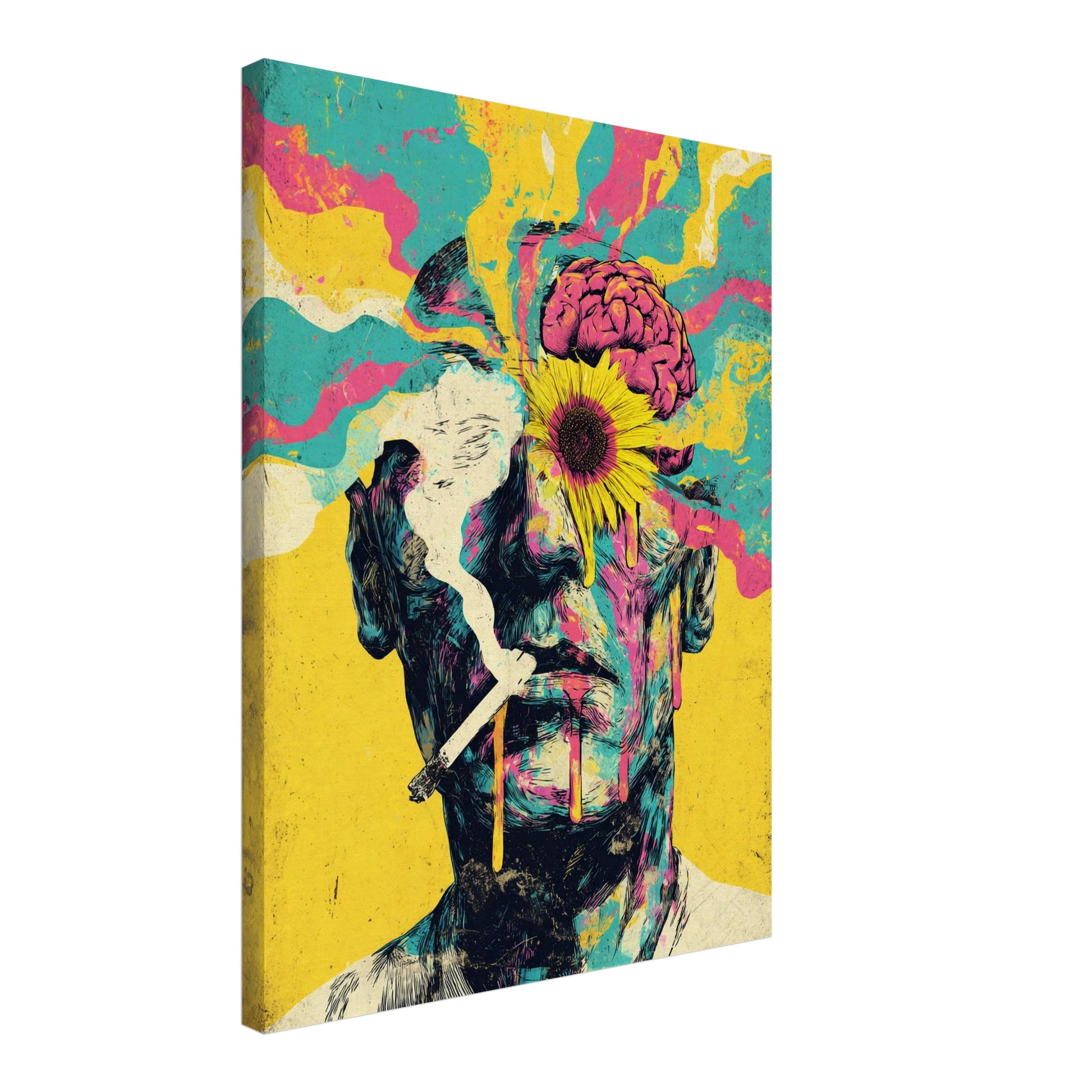 Dieses Psychedelic Art Canvas fängt das Aufblühen des Geistes in intensiver Farbigkeit ein. Der Mann mit der Blume im Kopf steht sinnbildlich für Transformation und Bewusstwerdung. Aus kräftigen Strichen und fließenden Übergängen entsteht ein Psychedelic Design, das mit Licht, Struktur und Symbolkraft spielt. Die Kombination aus floralen und organischen Elementen verleiht dieser Komposition aus der Welt der Psychedelic Bilder eine faszinierende Tiefe. Besonders im Wohnzimmer oder Schlafzimmer entfaltet das Psychedelic Werk seine inspirierende, fast meditative Wirkung – ein modernes Sinnbild geistiger Freiheit.
