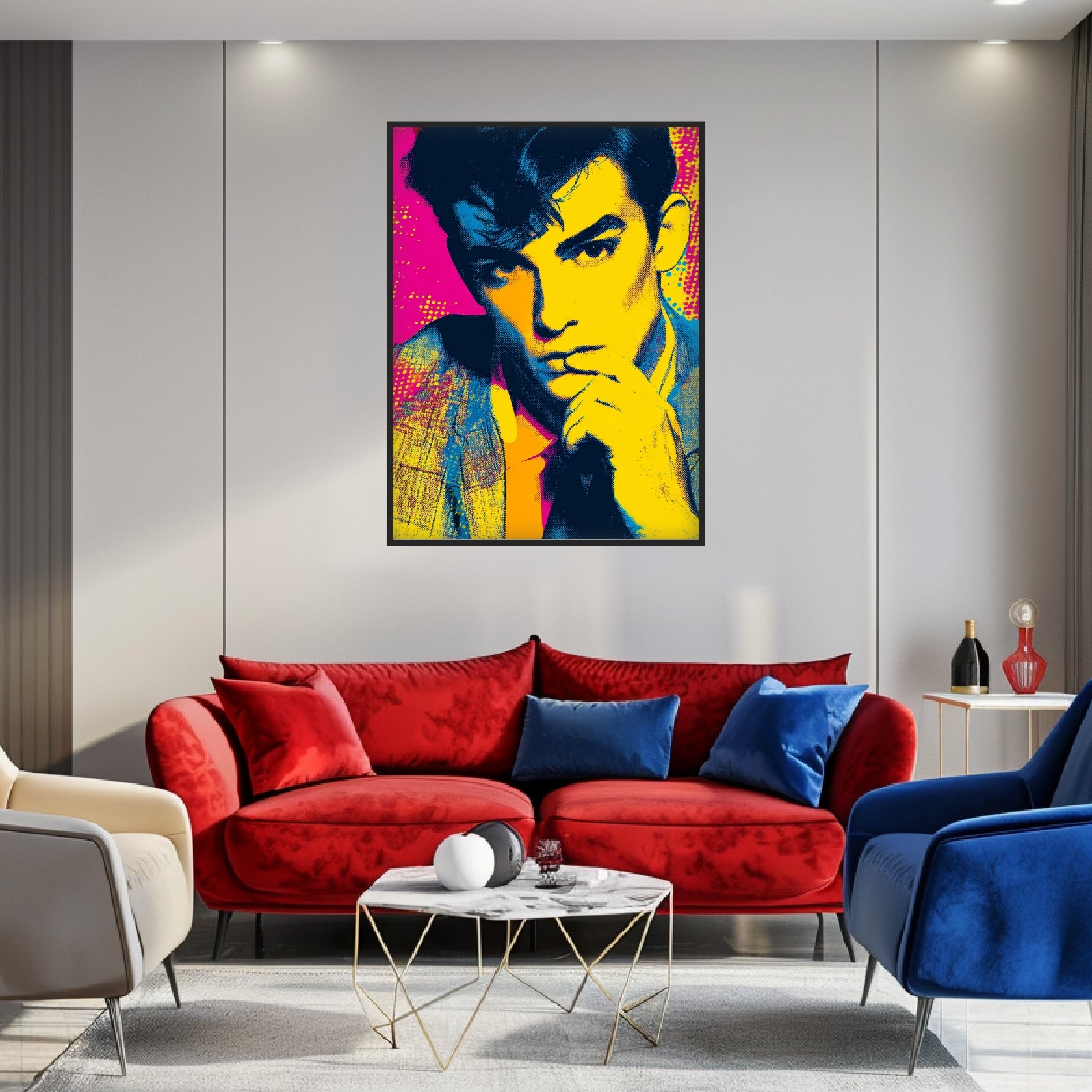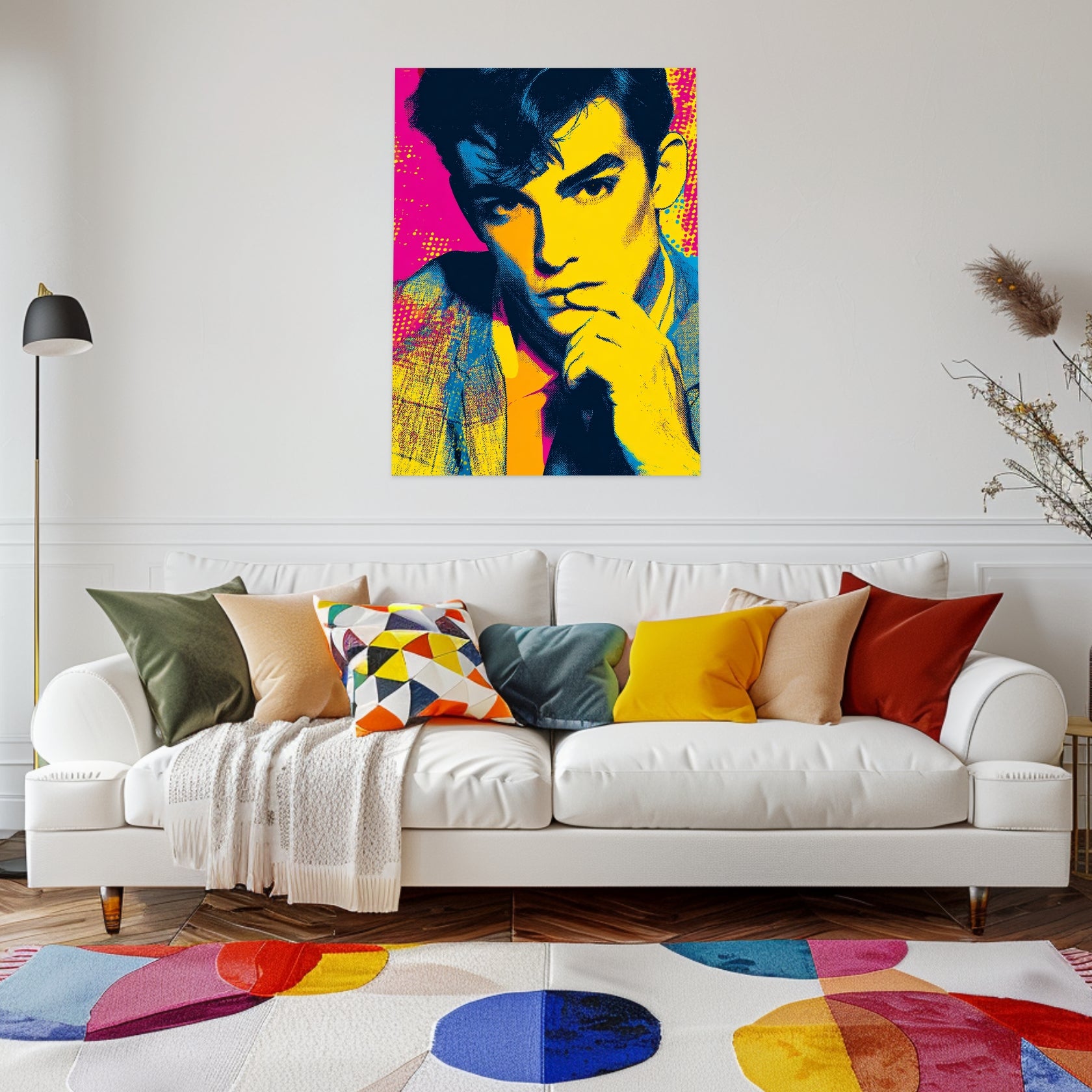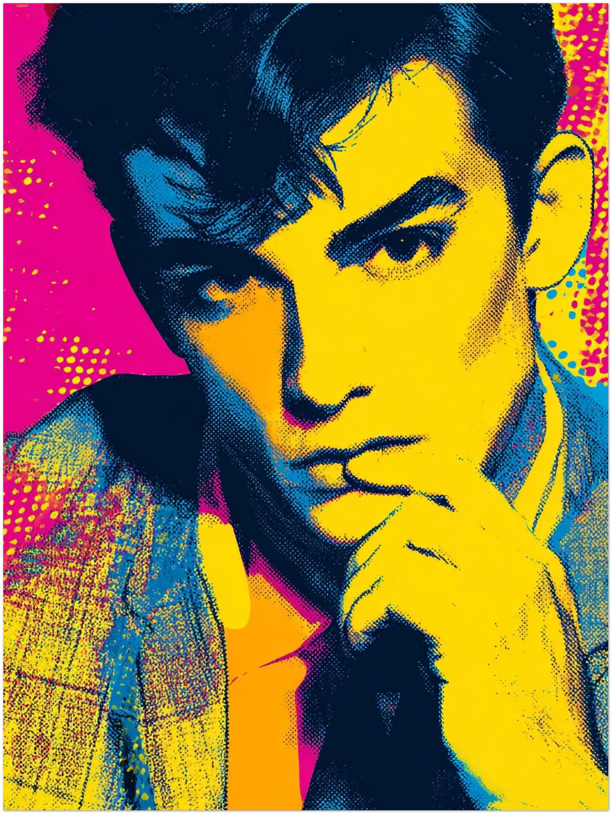 Ein Pop Art Poster, das Tiefe zeigt – „Nachdenklicher Mann“ ist eine Hommage an den Moment der Stille mitten im Farbenrausch. Der Blick des Mannes, ruhig und fokussiert, steht im spannenden Gegensatz zu der grellen Kombination aus Gelb, Pink und Blau. Jedes Detail, jeder Schatten ist bewusst gesetzt und erzählt von Stärke und innerer Reflexion. Dieses Popular Art-Highlight zieht den Betrachter sofort in seine emotionale Spannung. Perfekt für Wohnzimmer oder Arbeitszimmer – ein Pop Art Motiv, das den Popart Stil als Ausdruck moderner Persönlichkeit interpretiert.