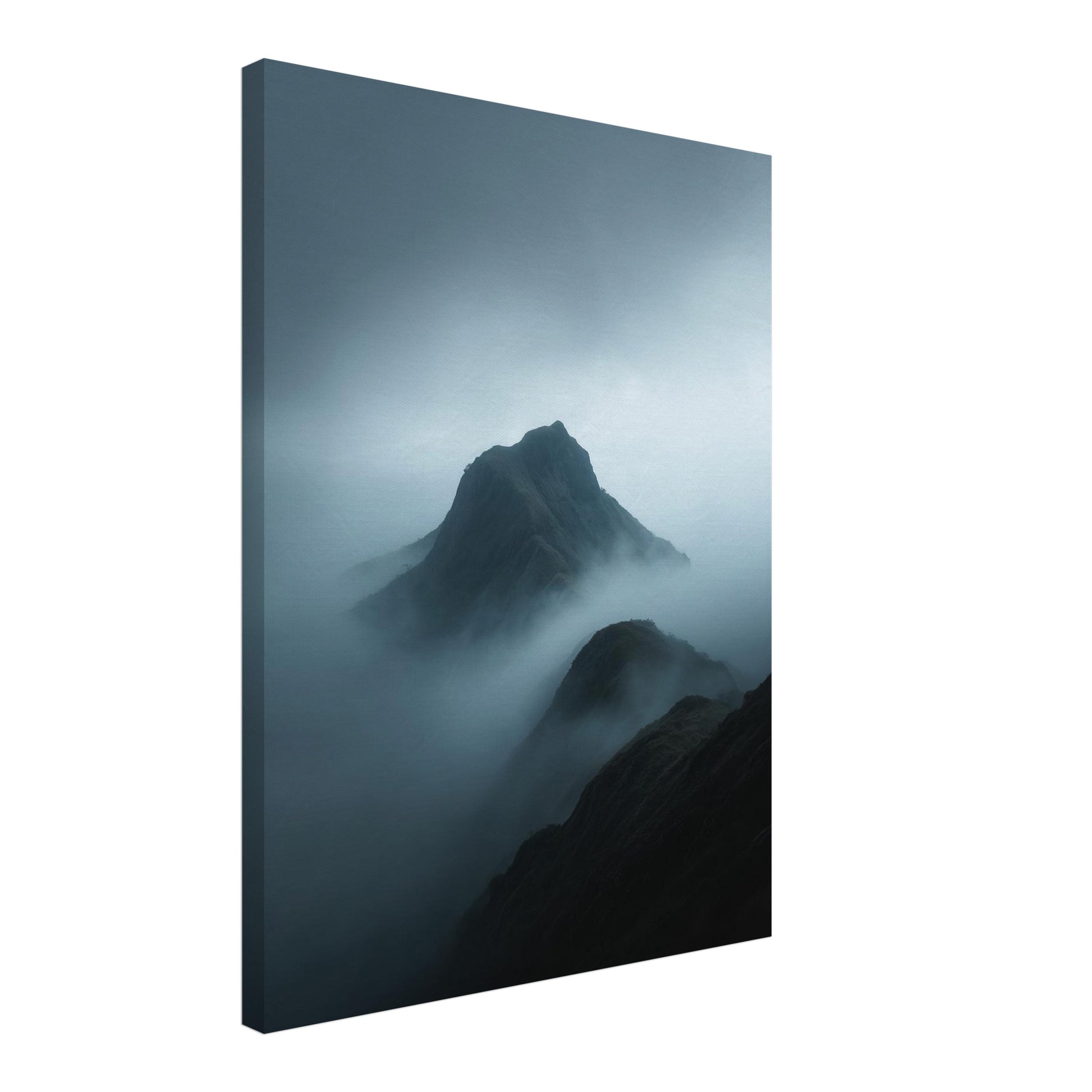 Auf der Leinwand entfaltet der Bergkamm eine spürbare Tiefe. Der Nebel legt sich in Schichten um die Hänge und lässt die Landschaft sanft aus dem Raum hervortreten. Die Oberfläche der Leinwand verstärkt die weichen Übergänge zwischen Licht und Schatten. Im Schlafzimmer oder im Wohnzimmer unterstützt das Motiv eine ruhige, klare Atmosphäre. Die Landschaft erscheint nicht dramatisch, sondern gesammelt und still. So entsteht ein ausgewogenes Zusammenspiel aus Natur, Raum und Material, das lange nachwirkt.