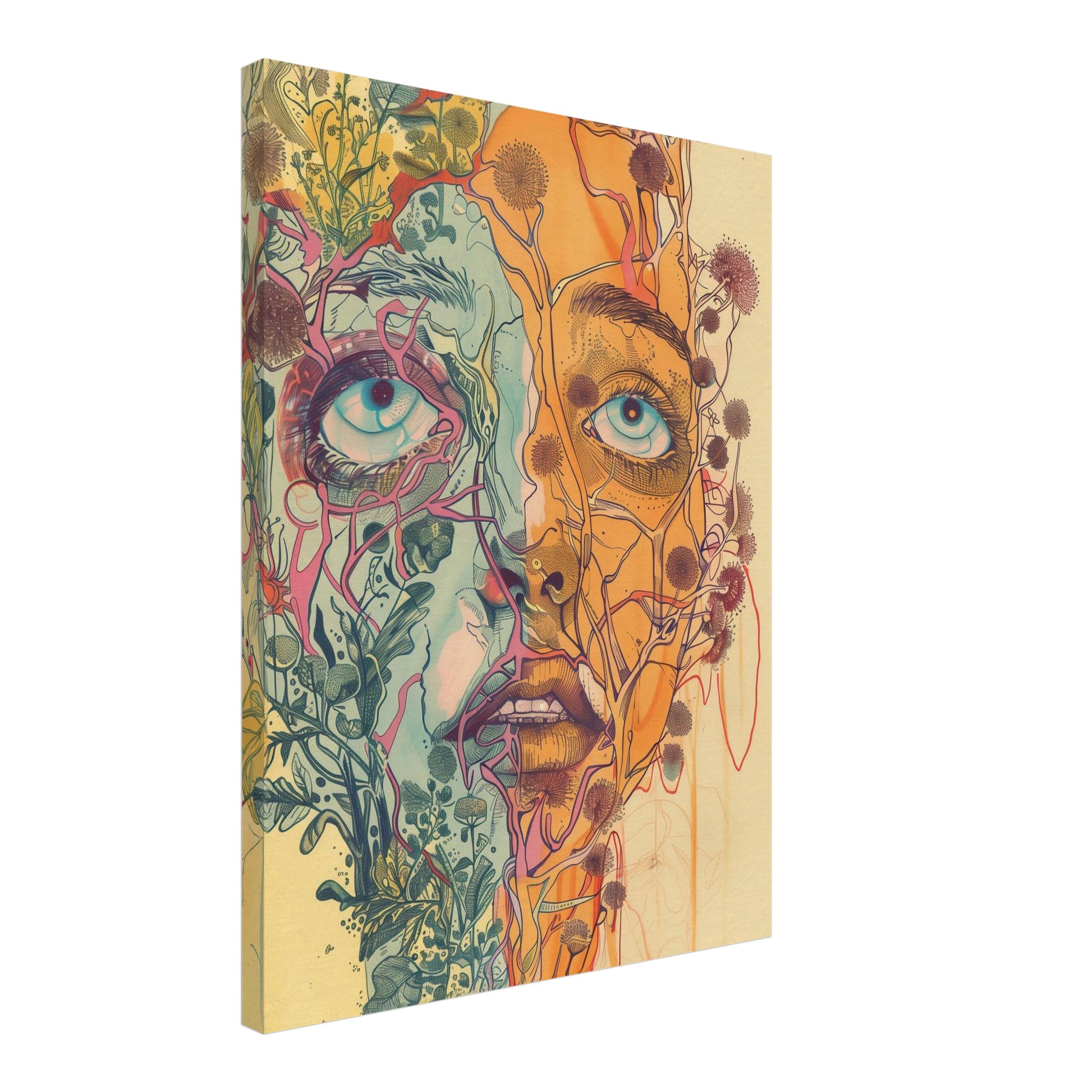 Detaillierte Bildbeschreibung für Pflanzenverwobenes Halbgesicht Leinwandbild