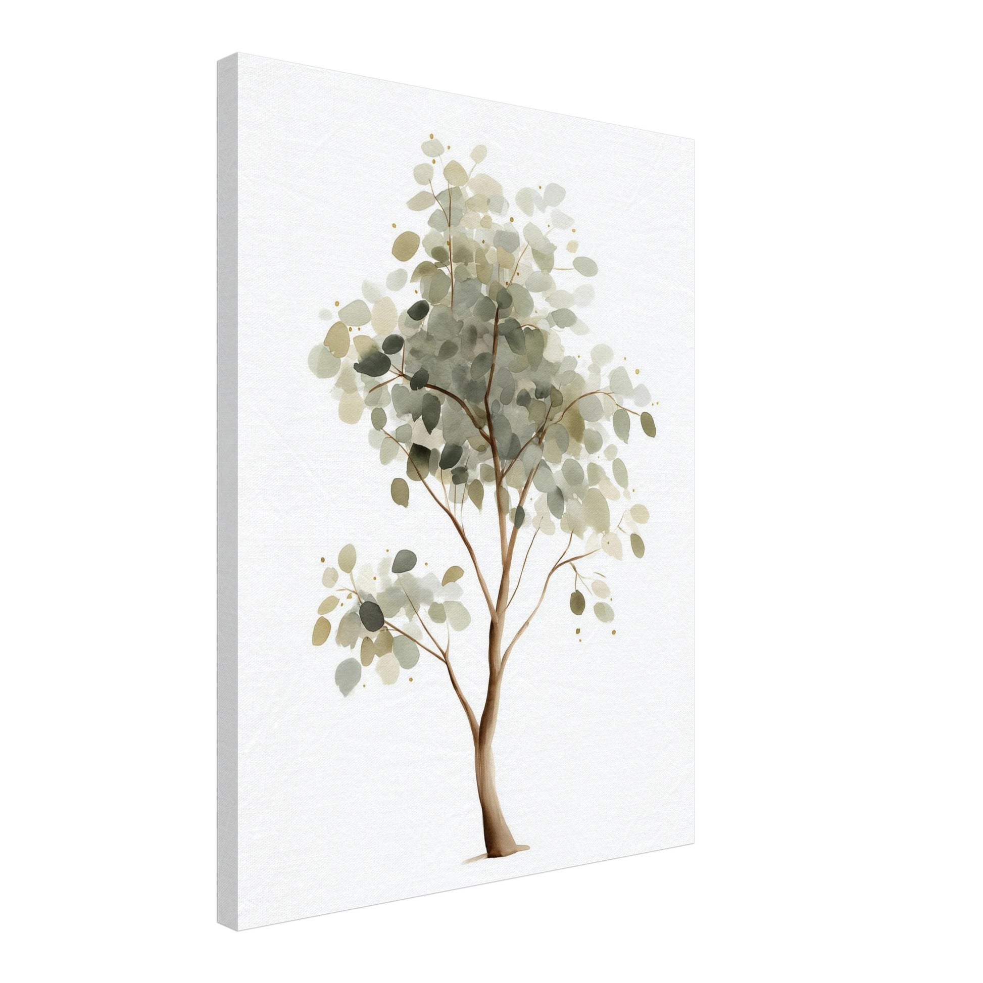 Auf diesem Leinwandbild entfaltet der Eukalyptusbaum eine besondere Tiefe. Die Leinwandstruktur verstärkt die sanften Farbflächen und lässt die natürlichen Formen ruhig und lebendig wirken. Die zurückhaltende Farbpalette sorgt für eine entspannte, ausgewogene Ausstrahlung.