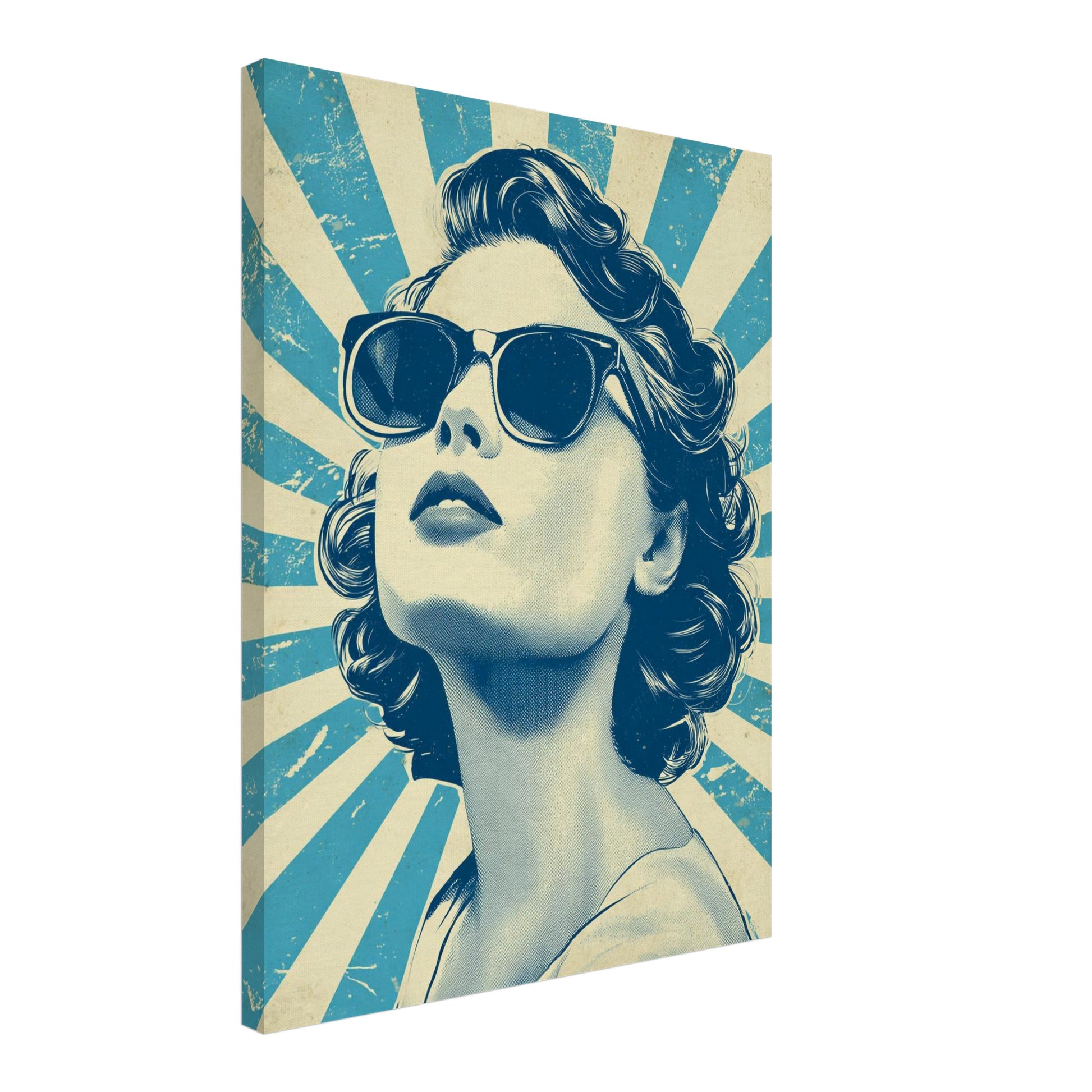 Dieses Leinwandbild zeigt ein ruhiges Porträt in einer breiten Palette türkiser Farbtöne, die durch klare Linien und feine Schattierungen eine dezente analoge Wirkung entfalten. Die Sonnenbrille bildet das zentrale Element der Komposition, während die strahlenartige Hintergrundfläche eine grafische Ordnung schafft und das Motiv elegant hervorhebt. Die kühle Farbwelt wirkt ausgewogen und vermittelt eine warme, ruhige Tiefe, die auf Leinwand besonders natürlich erscheint. In Wohnzimmer, Flur oder Büro setzt das Bild einen strukturierten, zeitlosen Akzent und lässt sich mühelos als Retro Leinwandbild, Wandbilder Retro Style oder Retro Art integrieren.