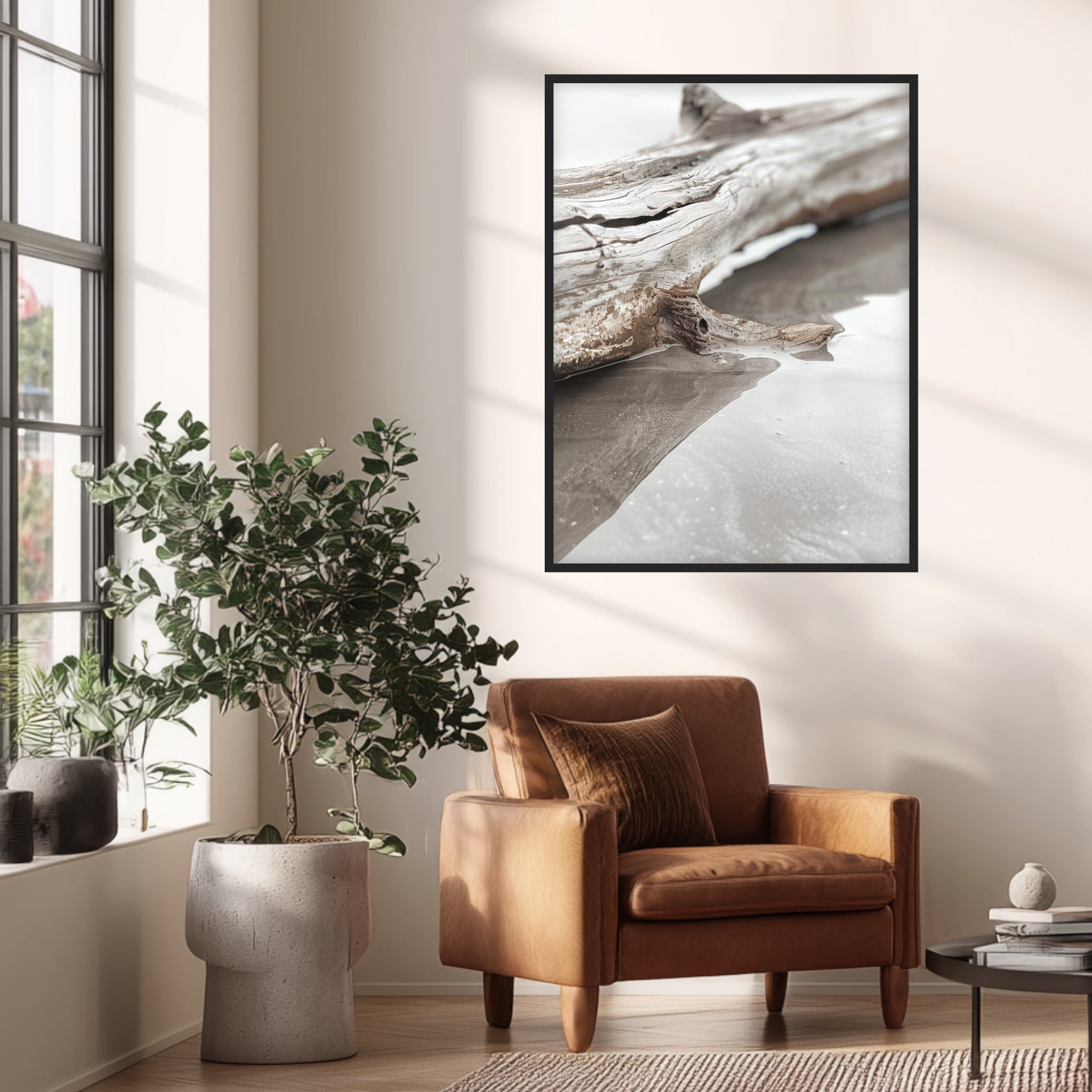 In Wohnräumen schafft dieses Landschaftsbild eine Atmosphäre der Entschleunigung. Die zurückhaltende Farbwelt aus Grau, Beige und gebrochenem Weiß harmoniert besonders gut mit klaren Linien und natürlichen Materialien. Ob im Wohnzimmer, Schlafzimmer oder Büro – dieses Wandbild Landschaft ergänzt moderne Einrichtungen um eine leise, naturverbundene Note.