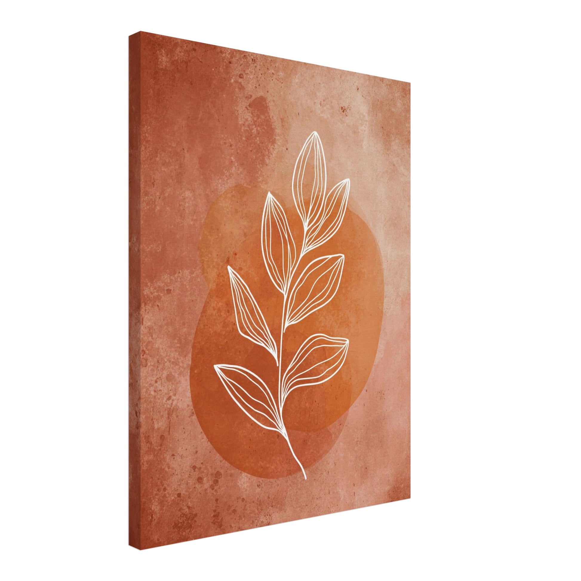 Detaillierte Bildbeschreibung für Weißer Blattzweig auf Terrakotta Leinwand