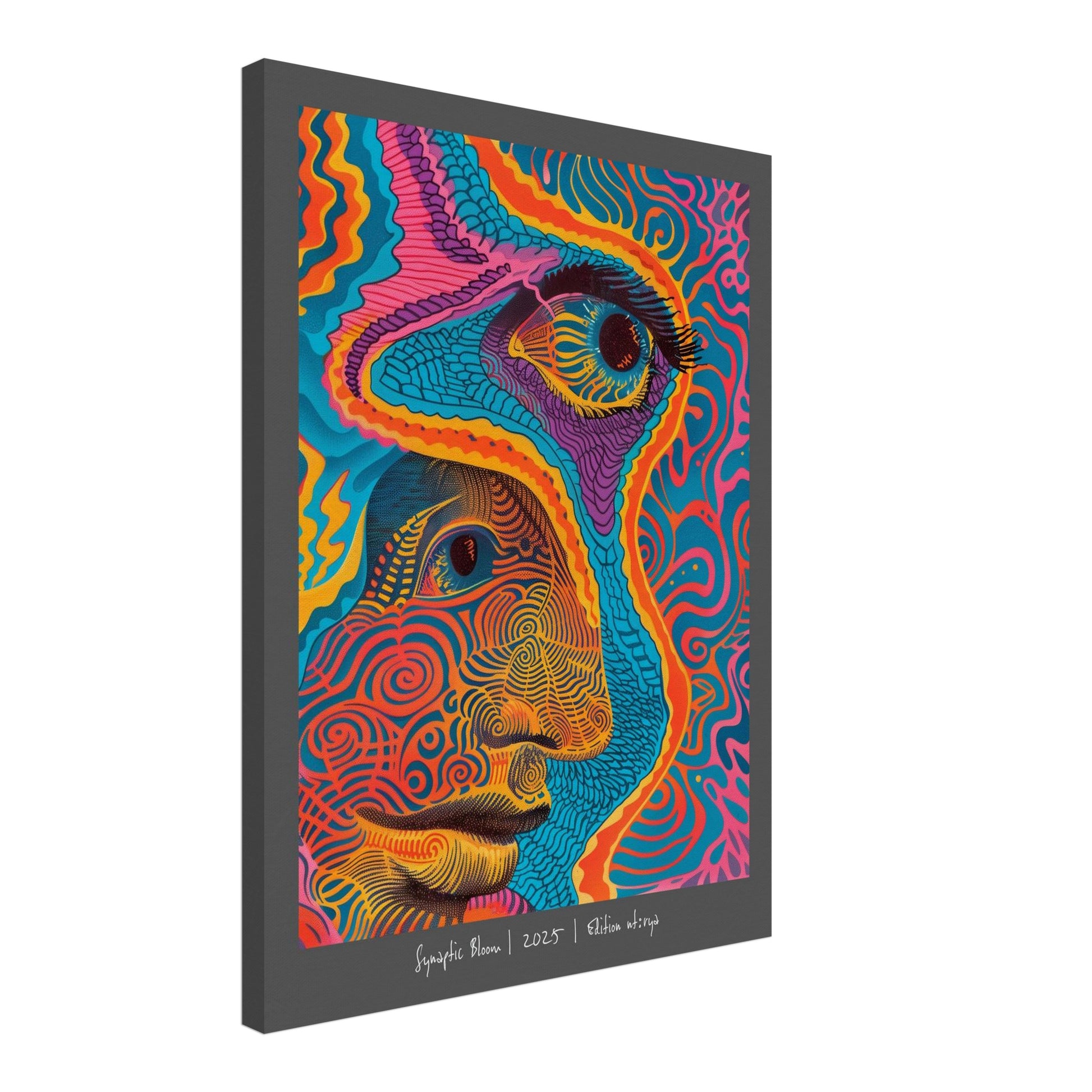Ein leuchtender Strom ineinander verwobener Linien prägt das „Wellenförmiges Gesichtsmuster“ Leinwandbild und erschafft ein farbiges Geflecht aus Energie, Struktur und Emotion. Die geschwungenen Muster fließen über das Gesicht wie tanzende Strömungen, die der Komposition einen organischen, beinahe meditativen Rhythmus verleihen. Besonders auf Canvas entfalten die feinen Konturen als Psychedelic Kunstwerk ihre ganze Intensität, wodurch das Motiv zu den ausdrucksvollsten Psychedelic Bilder zählt. Das plastische Psychedelic Design setzt im Schlafzimmer oder Wohnzimmer einen leuchtenden Akzent. Als Psychedelic Art Canvas erzeugt es eine harmonisch-pulsierende Raumwirkung voller Tiefe und strahlender Bewegung.