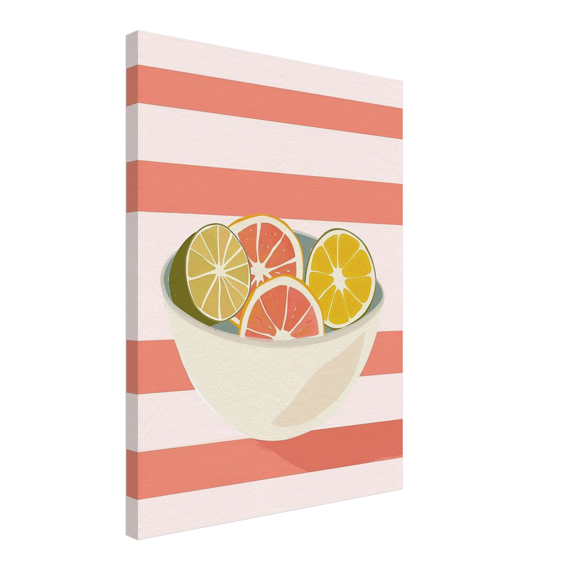 Ein freundlicher Hauch von Leichtigkeit durchzieht dieses Leinwandmotiv, in dem farbenfrohe Zitrusscheiben in einer soften Schale ruhen und von sanften Streifen im Hintergrund begleitet werden. Die warmen Töne und die klare Formsprache schaffen ein einladendes Gesamtbild, das besonders gut in Küchen oder hellen Wohnzimmerbereichen zur Geltung kommt. Die Struktur der Leinwand verstärkt den künstlerischen Charakter und verleiht den Farben eine natürliche Tiefe, die perfekt mit dem Stil von Dopamine Decor harmoniert. So entsteht ein modernes Kunstwerk, das sowohl die Vielfalt hochwertiger Dopamine Decor Bilder als auch die kreative Eleganz von Dopamine Design verkörpert und gleichzeitig die inspirierende Ästhetik einer Dopamine Decor Leinwand in Szene setzt.