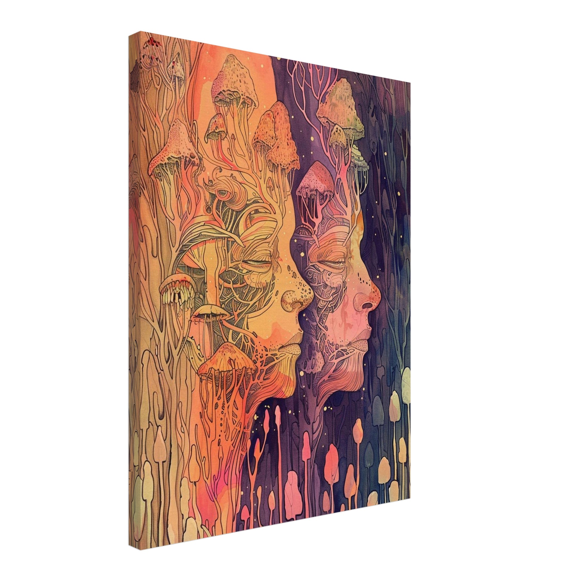 Detaillierte Bildbeschreibung für Zwei Gesichter mit Pilzen Leinwand